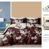 Lenjerie cu Elastic din Bumbac tip Finet pentru Pat Dublu, 4 Piese, cu 2 Fete de Perna