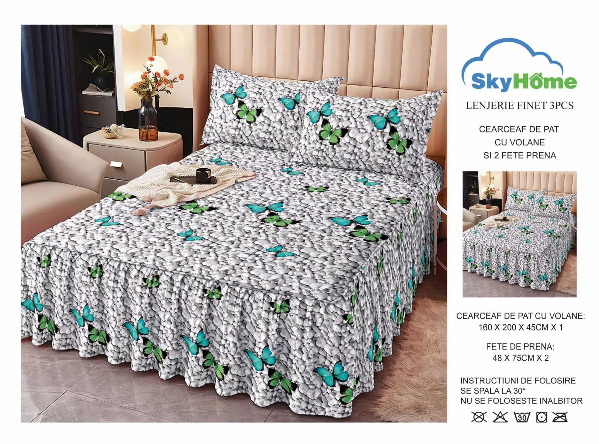 Lenjerii cu Volanase din Bumbac tip Finet, pentru Pat Dublu cu 2 Fete de Perna